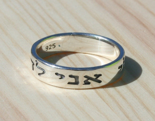 Song of Songs 6:3 I am my Beloved's and my Beloved is mine 925 Sterling Silver ring, Ani Le Dodi Ve Dodi Li 1.5mm thick and 4mm wide Unisex