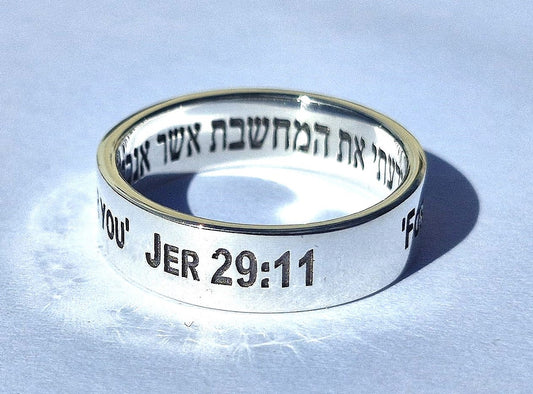 Jeremiah 29 Verse 11 For I know the plans Sterling Silver 925 Ring 1.5mm thick 6mm wide by Angelina Michaels