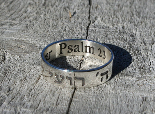Psalm 23 Verse 4 Though I Walk Through the Valley of the shadow of death 8mm Hebrew Bible Verse Ring
