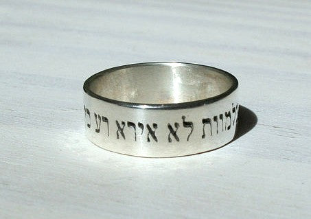 Psalm 23 Verse 4 Though I Walk Through the Valley of the shadow of death 8mm Hebrew Bible Verse Ring