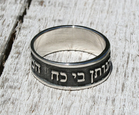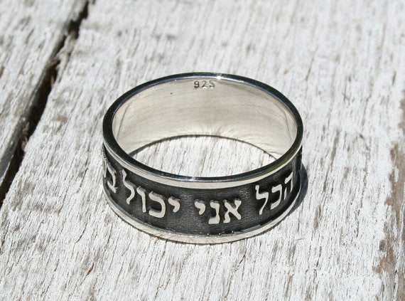 Philippians 4:13 Sterling Silver 925 Hebrew Embossed Ring - "I Can Do All This Through Him Who Gives Me Strength" 1.2mm Thick 8mm Wide