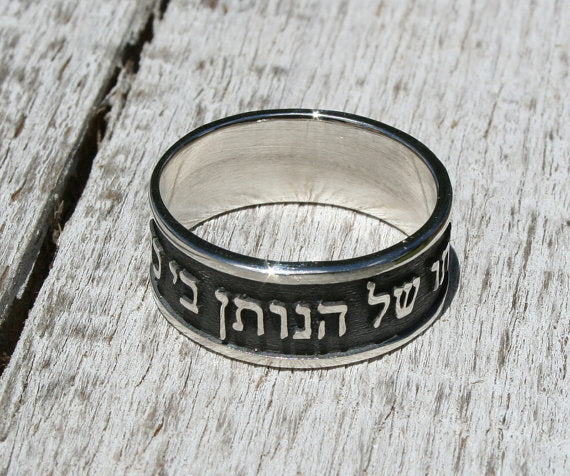 Embrace faith and strength with this beautiful Philippians 4:13 Sterling Silver 925 Hebrew Embossed Ring. Featuring the powerful Bible verse "I Can Do All This Through Him Who Gives Me Strength" embossed in Hebrew, this ring is both unique and deeply meaningful. Crafted from high-quality sterling silver, the 8mm wide band and 1.2mm thickness offer a comfortable fit and durability. This handcrafted piece blends spiritual significance with timeless elegance, making it the perfect gift for a loved one or a meaningful addition to your jewelry collection. Whether as a symbol of faith, strength, or encouragement, this ring carries a message of resilience and hope.